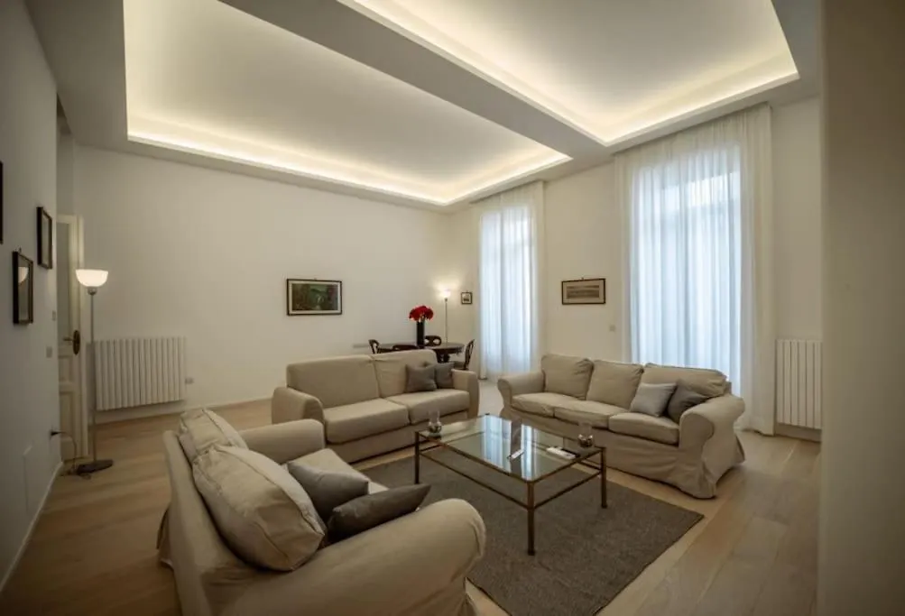 The spacious 90 m² Luxury Apartment In Naples lies within a 10-minute drive of San Carlo Theatre and at a 450-metre distance from Vanvitelli tube station. The 2-bedroom apartment is situated at a 350-metre distance from Piazza Amedeo train station and only a few metres from Falcone - Giordano bus station.